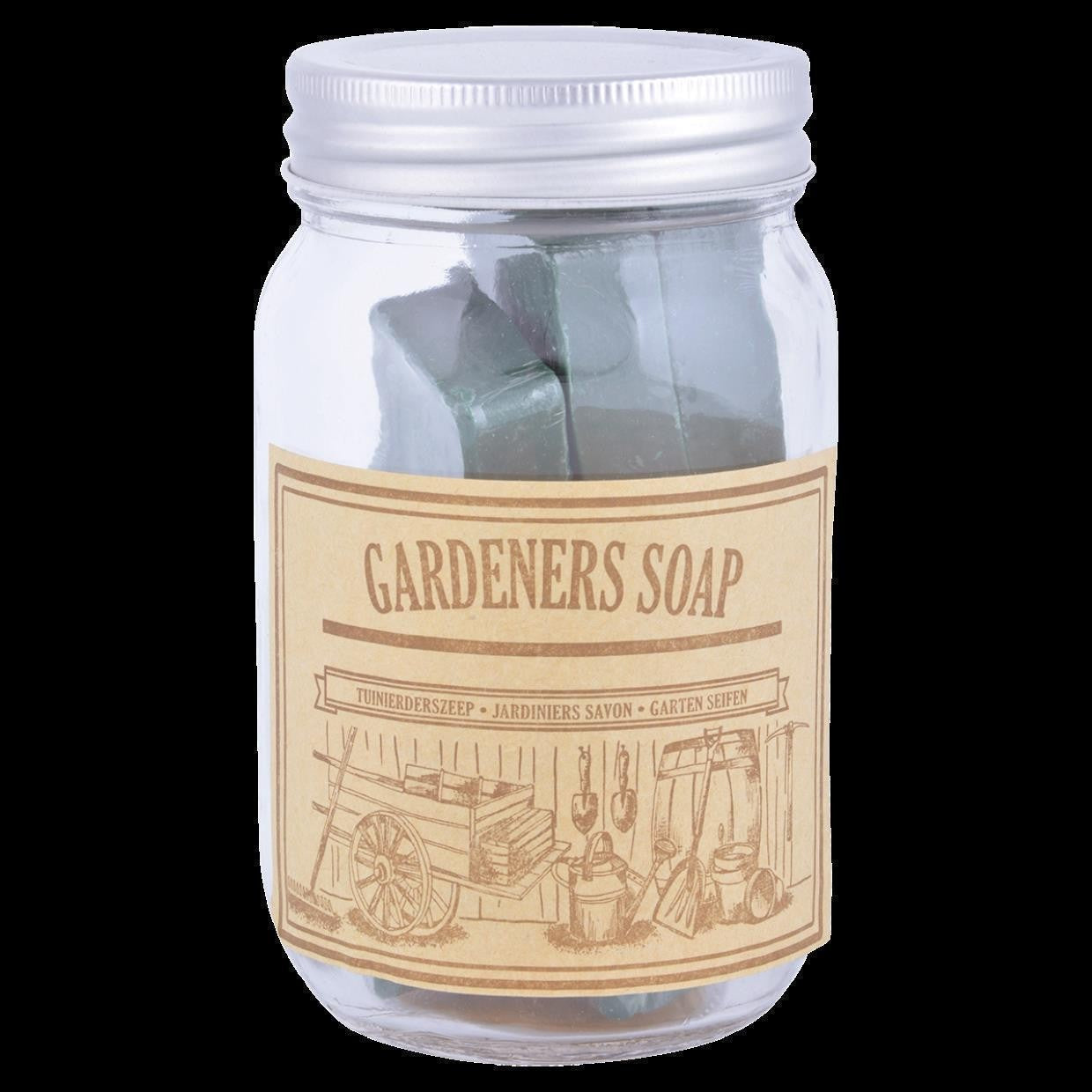 Marmeladengläser sind nicht nur in der Küche anzutreffen, sondern sind auch sehr praktisch zur Aufbewahrung von kleinen Gegenständen oder Gartenzubehör. Dank des Labels mit einem nostalgischen Druck und des transparenten Glases ist es nicht nur eine Freude fürs Auge sondern kann man so auf einen Blick erkennen, was sich in dem Glas befindet. Die kleinen Gärtnerseifenblöcke in diesem Glas, sorgen nach der Gartenarbeit dafür, dass Ihre Hände wieder gründlich gereinigt werden. Dank des Bimssteins in der Seife wird selbst hartnäckiger Schmutz von der Haut entfernt. Darüber hinaus enthält die Seife natürliche, pflanzliche Öle, die eine pflegende Wirkung für die Haut haben.